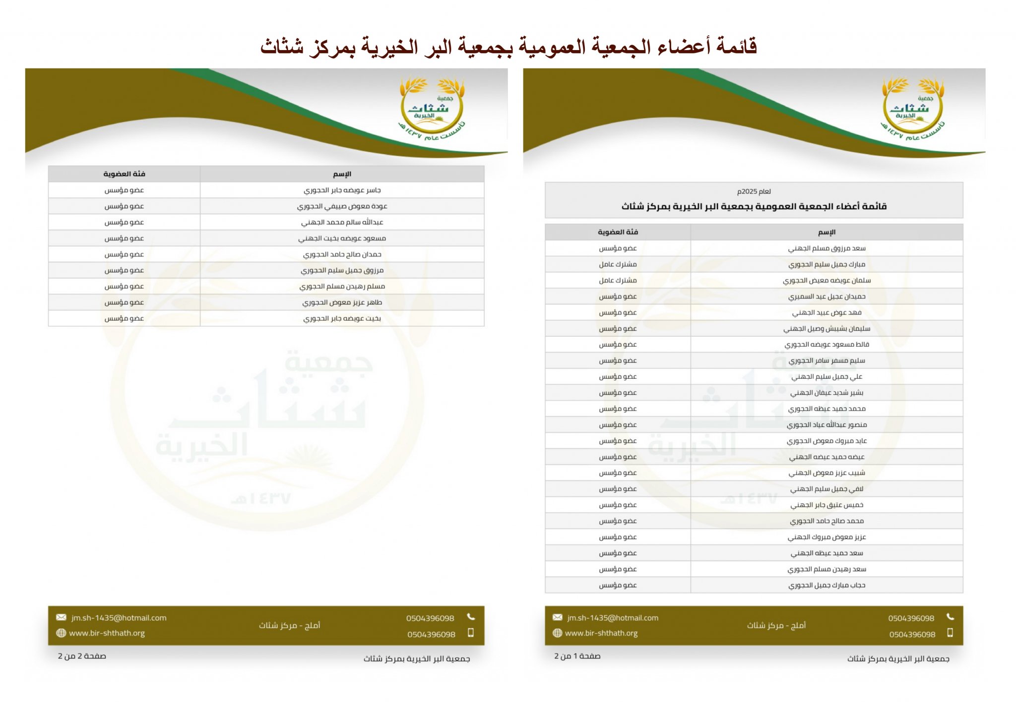قائمة بأسماء أعضاء الجمعية العمومية بجمعية البر الخيرية بمركز شثاث